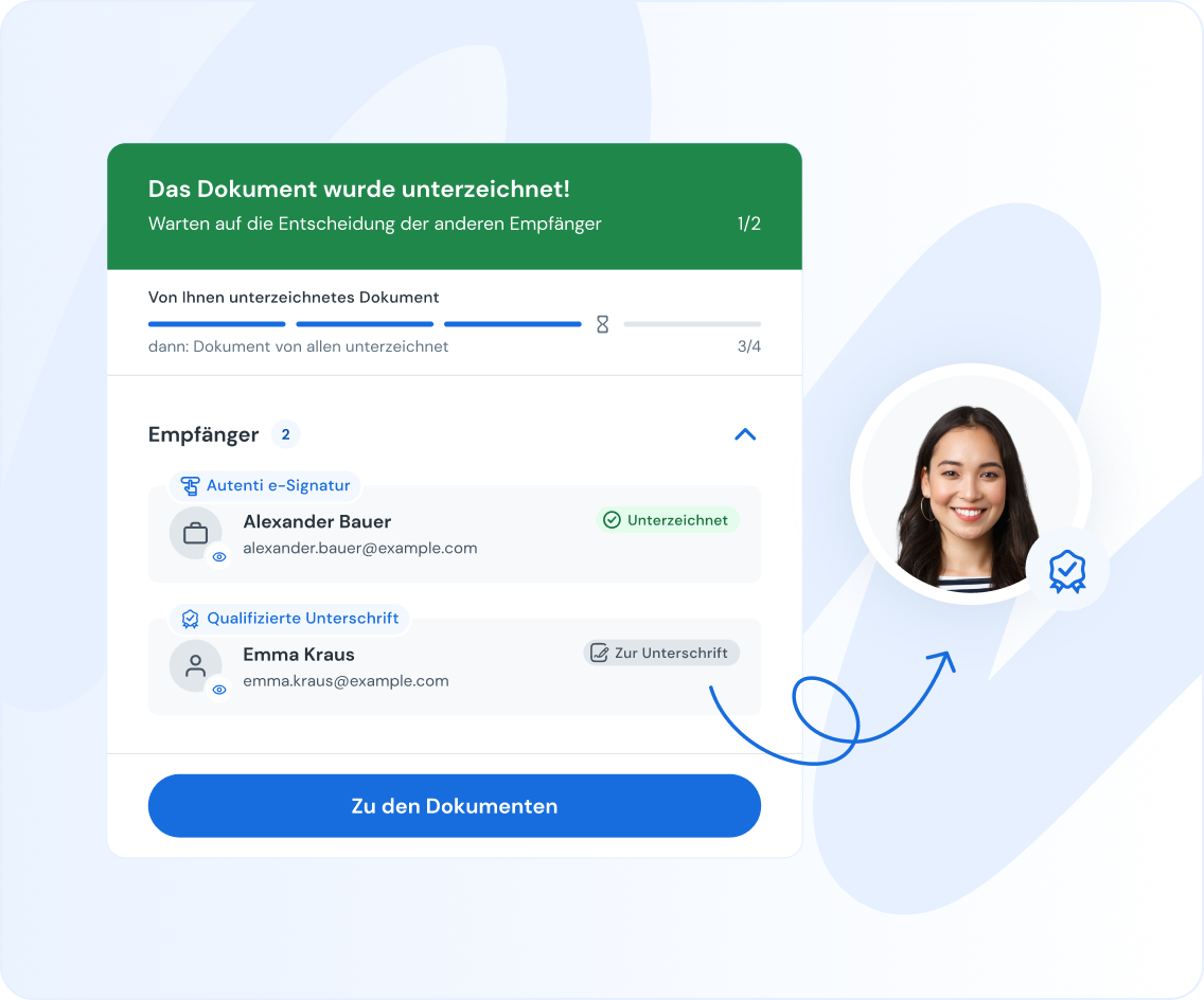 Mach es anderen leicht, mit dir Geschäfte zu machen. Autenti ist intuitiv für Unterzeichner gestaltet – so werden Dokumente schneller zurückgesendet und hinterlassen einen positiven Eindruck.