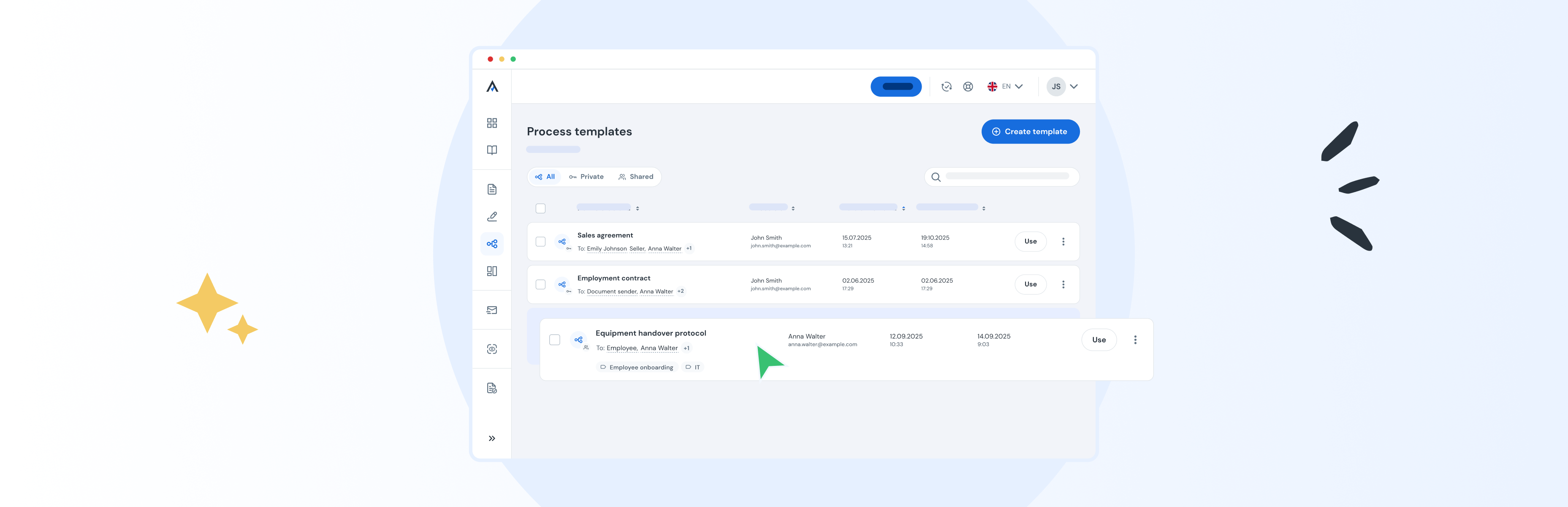 With templates, managers no longer need to worry about someone missing a step. A process defined once runs automatically – even for documents sent only a few times a year.