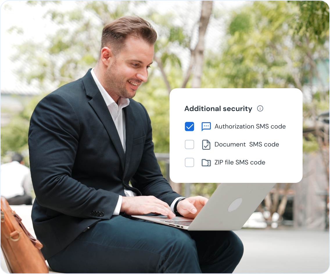 Decide how you want to protect your files. You can lock a document so it only opens with a one-time SMS code, or you can send the final signed version as an encrypted ZIP file that requires a separate password.