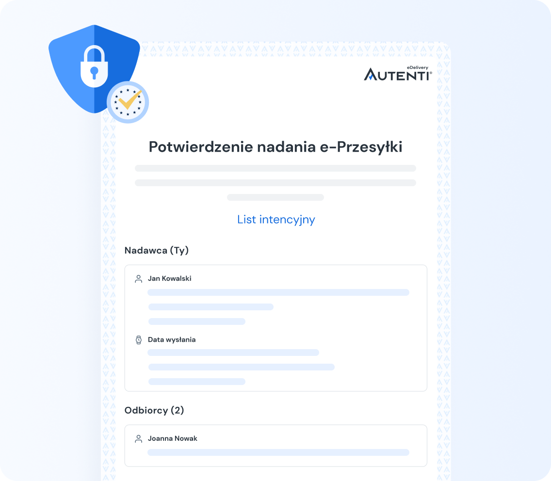 e-Doręczenia Autenti to usługa zaufania, która daje Ci nie tylko bezpieczeństwo prawne korespondencji, ale również bezpieczeństwo informacji i danych osobowych, jakie są przesyłane.