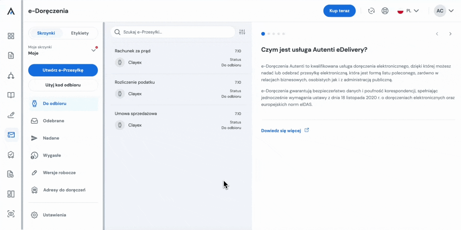 e-Doręczenia Autenti to elektroniczny odpowiednik tradycyjnych przesyłek za potwierdzeniem odbioru.