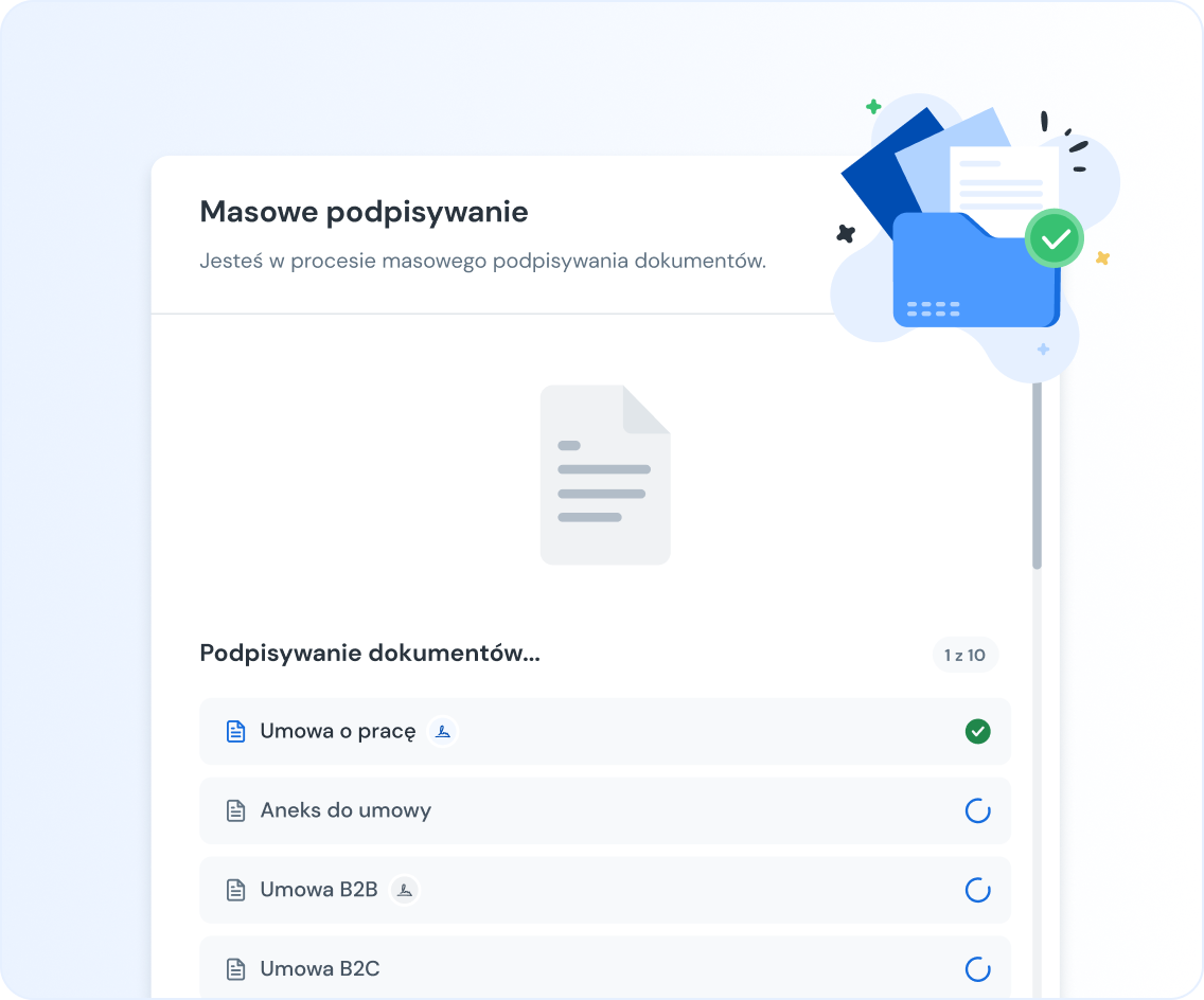 Nie marnuj czasu na powtarzalne zadania związane z podpisywaniem. Podpisuj jednocześnie wiele dokumentów w jednym procesie - bez przerywania swoich działań, bo dokumenty podpisują się automatycznie w tle!